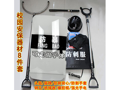 二、強光手電筒:功能:強光、弱光、爆閃 三、防割手套:功能:防割、防劃、防磨、抗酸抗堿 四、防暴鋼叉:材質:桿、叉采用不銹鋼鋼管手柄采用鋼球或高強尼龍 五、防刺背心